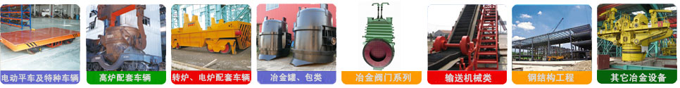 公司產(chǎn)品有ZT系列鐵水罐車、鋼包車、渣罐車、渣盤車、電動平車、過跨車、鐵水稱量車、液壓傾翻車、廢鋼料籃車、中間罐車、修爐車、爐底車、鎳鐵礦熱爐料罐車、汽運鐵水車以及各種鐵水罐(包)、鋼水包(罐)、渣罐、渣盤、中間罐、鋼包加蓋、龍門吊鉤、鋼包傾翻機、鋼包回轉臺等產(chǎn)品。